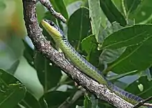 Dendrelaphis punctulatus, also known commonly as the Australian tree snake, the common tree snake, and the green tree snake, is a species of slender, large-eyed, diurnal, non-venomous snake in the family Colubridae. The species is native to many parts of Australia, especially in the northern and eastern coastal areas, and to Papua New Guinea.[3][4]