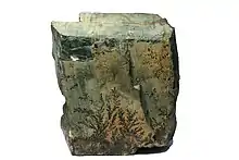 In paleontology, dendritic mineral crystal forms are often mistaken for fossils. These pseudofossils form as naturally occurring fissures in the rock are filled by percolating mineral solutions. They form when water rich in manganese and iron flows along fractures and bedding planes between layers of limestone and other rock types, depositing dendritic crystals as the solution flows through. A variety of manganese oxides and hydroxides are involved,[6] including: