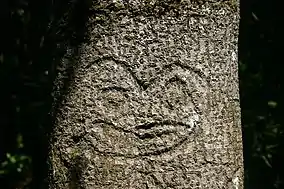 People around the world have carved designs in trees imbued with cultural or spiritual significance. These include Aboriginal Australian peoples, including in present-day New South Wales,[6] Western Australia, and Northern Territory.[7] In parts of Latvia and Estonia, some rural-dwelling people carve a cross on a certain tree after someone dies. In the western United States, there are incised drawings on aspens known as arborglyphs, made by shepherds and hunters,[6] and there are carvings made by the Chumash people depicting astronomical features.[8]