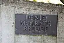 In 1978, the Wellington City Council finished construction of a pedestrian overbridge across the Wellington motorway (next to the Bolton Street Cemetery) which was named the Denis McGrath Bridge, in McGrath's honour.[13]