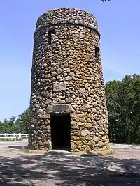 The dirt the women dug out became Scargo Hill. Today it is the highest hill in the mid-Cape area.[32] A stone tower commemorating Thomas Tobey, who settled in Dennis in 1678, was built in 1902.[32] The Tobey family gave the tower to the Town in 1929.[32]
