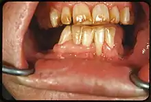 In 1931, 3 different groups of scientists around the world published their discoveries that this condition was caused by fluoride in drinking water during childhood.[33][34][35][36] The condition then started to become termed "dental fluorosis".[36] Through epidemiological studies in the US, Henry Trendley Dean helped to identify a causal link between high concentrations of fluoride in the drinking water and mottled enamel.[12] He also produced a classification system for dental fluorosis that is still used in modern times, Dean's Index.[12] As research continued, the protective effect of fluoride against dental decay was demonstrated.[12]