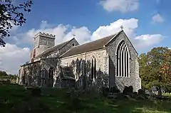 Denton's parish church is of Norman origin and dedicated to Saint Mary. The church tower holds evidence of three major rebuilding efforts, the most notable in the Eighteenth Century in the Tudor Perpendicular Style. The stained glass dates back to the Medieval period, with some examples installed by Le Grys Manfylde in the mid-Sixteenth Century.[4]