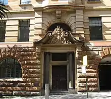 In 1875, the Colonial Secretarial Office moved into a new location and was taken over by the Department of Public Instruction in 1881. A variety of minor additions and repairs were made to the building however, it was too small and cramped for the offices of the Department of Public Instruction.[1] Under this surrounding of government buildings, the construction of the Department of Education building was initiated in two stages: Firstly, George McRae started the construction of the northern half of the Department of Public Instruction, now the Department of Education building using the Edwardian Baroque design. In 1901 when the Royal Australian Historical Society was founded met in a number of different venues and was eventually provided with rooms in the Department of Education building in Bridge Street. McRae, who was named a City Architect in 1887 and later became government architect, had already worked finalising the Sydney Town Hall. McRae also added to his curriculum two Sydney monumental buildings: the Romanesque style of the Queen Victoria Building façade (c. 1898) and the Edwardian Baroque style (also known as Federation Freestyle or Neo Baroque) of Central railway station (c. 1924). McRae latter style is characterised by sandstone structures that looked back to the 17th- and early 18th-century which developed the classical architecture of the Renaissance towards greater extravagance and drama. Its innovations included greater freedom from the conventions of the orders, much interplay of concave and convex forms, and a preference for the single visual sweep. This style was highly in vogue in Britain for government buildings at the time.