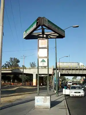 Deportivo Oceanía is an at-grade metro station in Gustavo A. Madero borough, in México City Mexico.[2][3] Its represented by a koala clinging to a soccer ball.[2][3] This metro station is named after nearby Deportivo Oceanía sports center, located north of the city; it offers many sports activities, like Tae Kwon Do, Volleyball, Soccer, with low fares, from $26.00 México Peso to $40. Deportivo Oceanía has facilities for the handicapped, and it is located near Avenida 608 avenue.