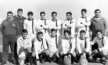 Riestra won its first official tournament in 1953, as Primera D champions. The Blanquinegro squad earned 39 points in 26 games, with a 2-point lead against Juventud de Bernal, in a tournament that also featured Almirante Brown and Deportivo Morón.[4] Deportivo Riestra stayed in Primera C for the next two decades, but without any successful seasons the club was not close to promotion positions. An 18th place in 1963 would have meant relegation for them, but the annulment of relegations that year allowed the team to stay.[5][6] Riestra won the Reclasificación tournament in 1969, a playoff involving many teams trying to avoid relegation, which would be the only achievement for them in this spell in Primera C.[7] In 1971 the club had its current name after merging with 'Asociación de Fomento Barrio Colón', an organization established in 1929 by businessmen and professionals that performed social activities and lobbied for improvements in the neighbourhood.