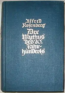 The Myth of the Twentieth Century (German: Der Mythus des zwanzigsten Jahrhunderts) is a 1930 book by Alfred Rosenberg, a Nazi theorist[1] and official who was convicted of crimes against humanity and other crimes at the Nuremberg trials and executed in 1946. Rosenberg was one of the principal ideologues of the Nazi Party and editor of the Nazi paper Völkischer Beobachter. In 1941, history professor Peter Viereck wrote: "In molding Germany's 'psychology of frightfulness' Rosenberg wields an influence as powerful as that of the much publicized Goebbels and the much feared Himmler and his secret police."[2]