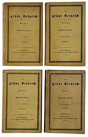 Green Henry (German: Der grüne Heinrich) is a partially autobiographical novel by the Swiss author Gottfried Keller, first published in 1855, and extensively revised in 1879. Truth is freely mingled with fiction, and there is a generalizing purpose to exhibit the psychic disease that affected the whole generation of the transition from romanticism to realism in life and art. The work stands with Adalbert Stifter's Der Nachsommer as one of the two most important examples of a Bildungsroman.