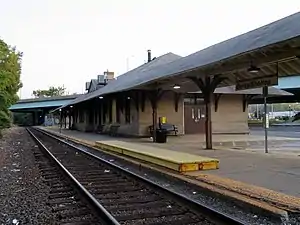 Derby–Shelton station (signed as Derby/Shelton) is a commuter rail station on the Waterbury Branch of the Metro-North Railroad New Haven Line, serving the cities of Derby and Shelton, Connecticut. It is the southernmost stop on the Waterbury Branch before trains merge onto the Northeast Corridor.