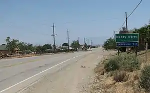 Derby Acres is a census-designated place (CDP) in Kern County, California, United States. Derby Acres is located 5.5 miles (8.9 km) north-northwest of Fellows,[3] at an elevation of 1,375 feet (419 m).[2] The population was 322 at the 2010 census, down from 376 at the 2000 census. The town is on State Route 33 at the northern extremity of the Midway-Sunset Oil Field, about five miles (8 km)five miles southeast of McKittrick.