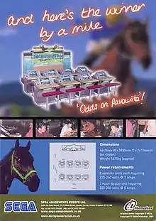 {{cite web}}:|last=has generic name (help) - "DERBY OWNERS CLUB 2000(ダービーオーナーズクラブ2000) – 株式会社セガ". セガ・アーケードゲームヒストリー|株式会社セガ (in Japanese). Retrieved 2021-07-16.
