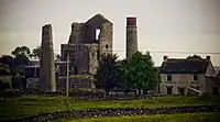Some areas of the White Peak exhibit contemporaneous basalt flows (e.g. Ravens Tor at Millers Dale), as well as subsequent dolerite sill intrusion at a much later stage (e.g. near Tideswell Dale),[25] whilst mineralisation of the carboniferous limestone in a subsequent period created extensive lead and fluorite deposits which have formed a significant part of Derbyshire's economy, as did coal mining. Lead mining has been important here since Roman Times.[26] The more recent river gravels of the Trent valley remain a significant extractive industry today in south Derbyshire, as does the mining of limestone rock in central and northern parts of the county.[27] Coarse sandstones were once extensively quarried both for local building materials and for the production of gritstone grinding wheels for use in mills, and both former industries have left their mark on the Derbyshire landscape.