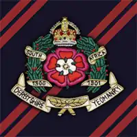 The regiment was first formed as the Derbyshire Corps of Fencible Cavalry in 1794, as a regiment of full-time fencible soldiers for home defence. The regiment changed shortly thereafter to the Derbyshire Corps of Yeomanry Cavalry, a part-time yeomanry regiment, and was dispersed in individual troops. In 1834, the troops were regimented as the Derbyshire Yeomanry Cavalry, who sponsored the 8th and 104th (Derbyshire) Companies of the Imperial Yeomanry in 1900, for service in the South African War, and in 1901 was itself reorganized as mounted infantry as the Derbyshire Imperial Yeomanry. In 1908, it was transferred into the Territorial Force, returning to a cavalry role and equipping as dragoons, under the new title of The Derbyshire Yeomanry.[1] The regiment was based at Siddals Road in Derby at this time (since demolished).[2]