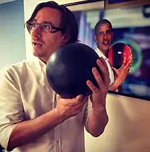 ![]() Derek Brown bowling at the Eisenhower Executive Office Building | |