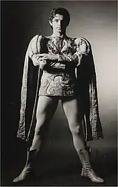 Within two years, Rencher had been recruited by Ninette de Valois into the Sadler's Wells Ballet, mainly because of his impressive height, trim physique, noble bearing, and remarkably good looks. A quick learner, he made his mark in mid-1950s ballets by rising young choreographers Kenneth MacMillan, Alfred Rodrigues, and John Cranko.[3] Over the next forty years, during which the Sadler's Wells Ballet was renamed the Royal Ballet, he would originate roles in ballets by Frederick Ashton, Robert Helpmann, Antony Tudor, and Rudolf Nureyev, as well as appearing in character roles in the company repertory.[4]