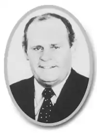 Corcoran left the Army in 1961 and in the 1962 state election was elected to the House of Assembly, succeeding his father as the member for Millicent.[4] He received 53.1 per cent of the two-party preferred votes, defeating Ren DeGaris of the Liberal and Country League (LCL).[21] Corcoran quickly impressed many within the Labor Party with his vigorous approach and his talent for administration. When the ALP won government in South Australia for the first time since 1930 in the 1965 state election,[22] Corcoran became Minister of Irrigation, Minister of Lands, and Minister of Repatriation.[4] In the election, Corcoran increased his share of the votes to 61.8 per cent.[23] Corcoran served on the parliamentary committee on land settlement from March to November 1965.[4] The new Premier, Frank Walsh, made Corcoran his chief political confidant. Like Walsh, Corcoran was a firm anti-communist and a devout Catholic. In fact, Walsh wanted Corcoran to be his successor, hoping thereby to foil the ambitions of Deputy Leader Don Dunstan, whom Walsh resented and distrusted. Corcoran's father Jim died in May 1965.[24]