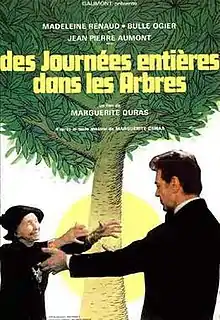 Des journées entières dans les arbres (in English, Entire Days in the Trees) is a 1976 French film directed by Marguerite Duras, based on her novel. Prior to directing a film version of the novel, Duras had already modified it into a stageplay that had enjoyed a theatrical run.