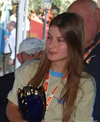 ![]() Desara Muriqi after the Ecorally San Marino - Città del Vaticano. Rome, 16 October 2011. | |