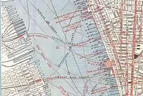 The Desbrosses Street Ferry opened in 1862 and ownership was transferred to the Pennsylvania Railroad in 1871. The ferry's route was longer, more circuitous and in a busier section of the river than most of the other ferries and as a result it suffered several accidents during its nearly 70 years in operation.[1]