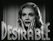 Desirable is a 1934 American drama film directed by Archie Mayo and starring Jean Muir and George Brent. It was released by Warner Bros. The film follows the story of Lois (Jean Muir), the 19-year-old daughter of a famous actress (Verree Teasdale), who has been hidden away at boarding school to protect her mother's image. A scarlet-fever quarantine sends her home to New York City, full of innocent enthusiasm, only to be betrayed by her mother, by the arrogant egotists of her mother's theatrical world and by the haughty social snobs in the upper-crust family whose son her mother persuades her to marry. Mac (George Brent), a friend of her mother's, initially plays an avuncular role. By the end of the film, Lois and Mac realize that they are in love.