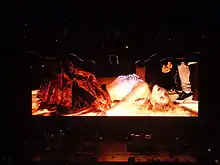 Shakira included the song on the setlist of her The Sun Comes Out World Tour (2010–11), where she performed it as a medley with "Nothing Else Matters" (1992), by American band Metallica.[19] For the performance she was dressed with a crop top and a red skirt.[20] Jon Pareles from The New York Times praised her performance in New York, saying that "she used her body, with a girlish grin and dance moves of finely calibrated sensuality: angular hip twitches and smooth slow-motion swivels, chest thrusts and sinuous wrist turns, as if her every joint rotates 360 degrees".[21] A writer of Sprinning Platters praised the performance of the song, calling it a "seductive dance number in which she managed to test the skill and professionalism of her drummer by incorporating him into her moves", further dubbing it a "'you had to be here' moment".[19] The live performance of "Despedida" was included on her album Live from Paris (2011) which was filmed during the concerts held on June 13 and 14 at the Palais Omnisports de Paris-Bercy.[22] It was also made available for purchase on the iTunes Store and released to the singer's official Vevo account on January 11, 2012.[23][24]