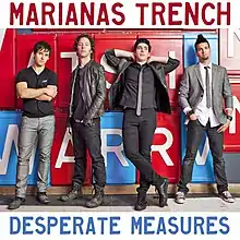 "Desperate Measures" is a song recorded by Canadian pop rock band Marianas Trench. It was released on July 4, 2012, as the third single on their third studio album Ever After.[1] The song peaked on the Canadian Hot 100 chart at number 20 on the week of August 11, 2012 and was certified triple platinum in Canada in March 2023.[2][3]