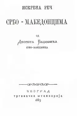- Искрена реч Србо-Македонцима. Belgrade: Трговачка Штампарија. 1885.