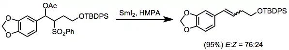 - Ihara, M.; Suzuki, S.; Taniguchi, T.; Tokunaga, Y.; Fukumoto, K. (1994). "Modification of the Julia Alkenation Using SmI2-HMPA". Synlett. 1994 (10): 859. doi:10.1055/s-1994-23033.
