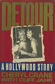 Detour: A Hollywood Story is a 1988 memoir by Cheryl Crane, the only daughter of actress Lana Turner, with additional writing from Cliff Jahr. In the book, she recounts her early life, including her alleged sexual abuse by her stepfather Lex Barker, and the 1958 killing of Johnny Stompanato during a domestic struggle. She also details her coming out as a lesbian to her parents as a teenager, a fact that had not been publicly disclosed prior.[3] The book went on to become a New York Times Best Seller.[4]