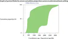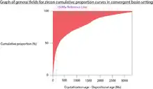 | Resulting zircon record | Youngest detrital zircon grain is approximately the onset of sediment accumulation[35] | High, especially within periods of supercontinent | Youngest detrital zircon provide a maximum depositional age much older than the onset of sediment accumulation |