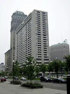 Detroit City Apartments is a high-rise in downtown Detroit, Michigan. Built in 1981 and named Trolley Plaza for nearby Washington Boulevard trolley line, the residential building stands 28 stories tall. The building is located at 1431 Washington Boulevard and occupies the block bordered by Clifford Street, Grand River Avenue and Washington Boulevard. In 2009, Village Green purchased the building and changed the name of the high-rise apartments to Washington Square. In 2013, Washington Square became the Detroit City Apartments.[1]