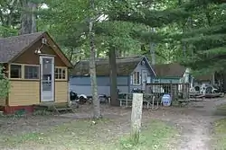 In about 1906, a group of Detroit-area people of Finnish descent formed the Detroit Finnish Educational Association to preserve and share the traditions of their native land.[3] The Association members participated in communal summer activities, often renting beaches and parks for camping and swimming.[3] In 1925, the Association formed a committee to select a permanent spot for the group's outdoor activities. After some searching, the committee selected the present site, and formed the Detroit Finnish Cooperative Summer Camp Association as a separate organization, open to anyone who was "of Finnish descent, Finnish speaking, of good character and [living] in the Detroit area."[3] In June 1925, the Summer Camp Association purchased this land with the purpose of constructing a permanent summer camp .[2] The first sauna was constructed in 1926, and the dance hall in 1927.