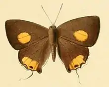 Deudorix lorisona, the coffee playboy, is a butterfly in the family Lycaenidae. It is found in Senegal, the Gambia, Guinea-Bissau, Guinea, Sierra Leone, Burkina Faso, Liberia, Ivory Coast, Ghana, Togo, Nigeria, Cameroon, Equatorial Guinea, São Tomé and Príncipe, Gabon, the Republic of the Congo, the Central African Republic, the Democratic Republic of the Congo, Sudan, Uganda, Ethiopia, Kenya, Burundi, Tanzania, Malawi, Zambia, Mozambique and Zimbabwe.[2] The habitat consists of dense savanna and forests.