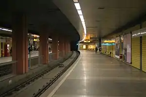 Deutz Technische Hochschule is an underground station on the Cologne Stadtbahn lines 1 and 9, located in the Cologne district of Deutz. The station lies on Deutz-Kalker Straße.