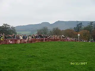 The mountain was the scene of a mass anti-tithe meeting on 25 July 1832. The meeting was part of a wider campaign of resistance to the payment of tithes (one-tenth of the value of arable produce) to the Church of Ireland by the majority Catholic population.[7] According to press reports of the time, over 50,000 people attended, many coming from as far away as Co. Galway, although the attendance would have been larger had there not been confusion about whether or not the meeting was cancelled.[8] Although local folklore states that Daniel O' Connell attended the meeting, it is almost certain that he was not present as he was attending parliamentary debates in Westminster at the time. A semi-fictional account of the meeting was given by Samuel Lover in Legends and Stories of Ireland (1834), where he refers to a mock 'burial' of the tithes by local peasantry.[9]