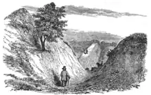 The earthwork has been described by various different commentators since Anglo-Saxon times. The Anglo-Saxon Chronicle may refer to the Devil's Dyke in its annal for 905, when Edward the Elder is recorded as fighting and defeating the Danes of East Anglia, after first laying waste to the countryside: 'and he laid waste their land between the Dyke and the Ouse as far northward as the Fens'—' and oferhergade call hera land betwuh dicun and Wusan. call oþ da fennas norð' .[7] Abbo of Fleury, writing in the late 10th century, described East Anglia as "fortified in the front with a bank or rampier like unto a huge wall, and with a trench or ditch below in the ground".[8] The mediaeval Flores Historiarum, referred to "...duo fossata sancti Eadmundi..." – the two fortifications of St Edmund – when describing the battle between Edward and his adversaries.[9]