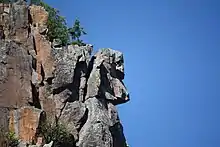 Devil's Rock (also known as Devils Rock; Anishinaabe: Mani-doo Aja-bikong[1] or Manidoo Wabikong) is a granite escarpment located 5 kilometres (3 mi) south of Temiskaming Shores, Ontario, Canada. The cliffs rise 300 feet (91 m) above Lake Timiskaming and extend nearly as far underwater as they do above, giving Devil's Rock a cliff face roughly 600 feet (180 m) tall.[2]