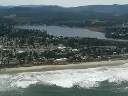 Devils Lake is a small lake in Lincoln County, Oregon, United States, along the Oregon Coast.[1] It separates the northern part of Lincoln City from the Central Oregon Coast Range. It is 1/3 of a mile wide, three miles (5 km) long, and up to 21 feet (6.4 m) deep. The D River flows from the lake westward to the Pacific Ocean. At 120 feet (37 m), it is one of the world's shortest rivers, but for a definition of river that excludes estuaries .