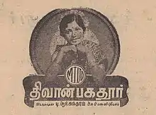 Diwan Bahadur (transl. Dewan Bahadur) is a 1943 Indian, Tamil language film directed by T. R. Sundaram.[2] The film featured T. R. Ramachandran and J. Susheela in the lead roles.[3]