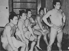 The stable's rise to prominence was due to the 19th yokozuna Hitachiyama, who transformed it from a minor stable when he joined sumo into a powerful recruiting house when he retired in 1914 and became its head coach.[1] Under his leadership the stable produced three yokozuna, Ōnishiki, Tochigiyama and Tsunenohana, ōzeki Kyushuzan, Tsushimanada, Ōnosato, and Hitachiiwa, and 20 other top division wrestlers.[1] At its peak the stable contained over 200 wrestlers, and Hitachiyama's refusal to allow any of his disciples to break away and form new stables when they retired ensured its dominance remained after his death in 1922 at the age of 48. Tsuneohana was the rijichō, or head of the Japan Sumo Association from 1944 to 1957, and every subsequent head from 1968 to 1998, including former Dewanohana Kuniichi and the 50th yokozuna Sadanoyama, was a member of the Dewanoumi ichimon. The 57th yokozuna Mienoumi was the first Dewanoumi stable member to be permitted to branch out and open a new stable, which he did in 1981 with Musashigawa stable. (A previous yokozuna from the stable, Chiyonoyama, had been thrown out of the Dewanoumi ichimon in 1967 after setting up Kokonoe stable). Long time head Sadanoyama stood down in 1996, passing control over to former sekiwake Washūyama.