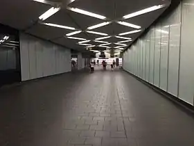 The Dey Street Passageway or Dey Street Concourse is a 350-foot-long (110 m) underground passageway in Manhattan, New York City, built as part of the Fulton Center project to rehabilitate the Fulton Street station complex and improve connectivity in Lower Manhattan.[1] The Dey Street Passageway lies under Dey Street in Lower Manhattan, between Broadway in the eastern end, and Church Street in its western end.[lower-alpha 1]