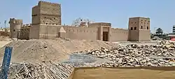 The largest inland city in the Emirate of Sharjah and also the oldest,[6] the fertile oasis of Dhaid has long occupied a strategic location in the mouth of the important Wadi Siji.[7] The city has been a centre of human habitation since the Neolithic[8] and is located in an important crossroads between the Hajar Mountains, Jiri Plain and desert of Sharjah.[9] The fort reflects the strategic importance of Dhaid as a Qawasim stronghold. The city was traditionally dominated by the Tanaij, Bani Qitab and Khawatir Bedouin tribes.[10]