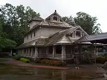 Dharmasthala Temple (Kṣētra Dharmasthala) is an 800-year-old[1] Hindu religious institution in the temple town of Dharmasthala in Dakshina Kannada, Karnataka, India. The deities of the temple are Hindu god[2] Shiva, who is referred to as Mañjunatha, Hindu goddess Ammanavaru, the Tirthankara Chandraprabha and the protective gods of Jainism, Kalarahu, Kalarkayi, Kumarasvami and Kanyakumari. The temple was reconsecrated in 16th century by Hindu Dvaita saint Vadiraja Tirtha by the request of the then administrator of the temple, Devaraja Heggade.[3][4] The temple is considered unique,[5] Since the priests in the temple are Madhwa Brahmins, who are Vaishnava, and the administration is run by a Jain Bunt family called the Pergades.[6]