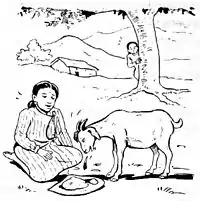 Dhon Cholechā (Nepali: धोन चोलेचा) is a Nepalese folk tale about a little girl and an old nanny goat. It is the most well known children's story in Newar society of the Kathmandu Valley. It tells about a little girl named Punthakhu Mainchā (पुन्थखु मैंचा) and the ill treatment she suffers at the hands of her cruel step-mother.[1] [2] Dhon Cholechā means "old nanny goat" in Nepal Bhasa.
