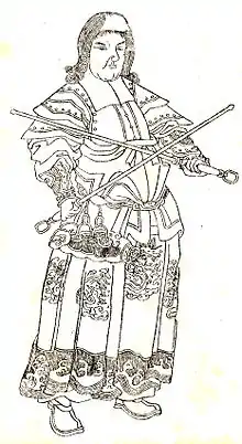 Di Qing is depicted as the incarnation of the Astral God of Military Arts (Wuquxing, 武曲星), while another protagonist — famous Song figure Bao Zheng as the Asrtal God of Civil Arts (Wenquxing, 文曲星).[1] Three Qing Dynasty novels are collectively known as the Romance of Di Qing and are attributed to Li Yutang. The central character in all 3 novels is Di Qing. The first one is originally titled "Pavilion of Ten Thousand Flowers" (萬花樓); the second one is titled "Five Tigers Conquering the West" (五虎征西) and the last one is titled "Five Tigers Conquering the South" (五虎平南). The novels also prominently feature Yang Zongbao from the Yang clan and Bao Zheng as the protagonists.