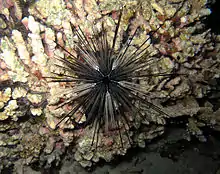 Diadema savignyi is a species of long-spined sea urchin belonging to the family Diadematidae. Common names include long-spined sea urchin, black longspine urchin and the banded diadem. It is native to the east coast of Africa, the Red Sea, the Indian Ocean and western Pacific Ocean. It was first described in 1829 by the French naturalist Jean Victoire Audouin. The specific epithet honours the French zoologist Marie Jules César Savigny who described many new marine species from the Mediterranean Sea and Red Sea.[2] The type locality is Mauritius.[1]