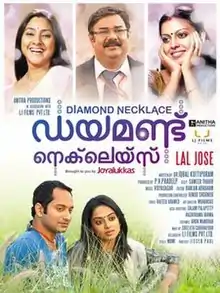 Diamond Necklace is a 2012 Indian Malayalam-language romantic drama film directed by Lal Jose and written by Iqbal Kuttippuram, starring Fahadh Faasil, Gautami Nair, Samvrutha Sunil and Anusree. This movie tells the life story of Dubai-based oncologist Dr. Arun Kumar and the end of his luxurious life after meeting three women from different lifestyles.