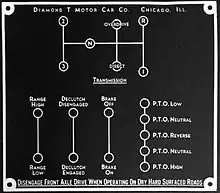 A 5-speed manual transmission with a very low 1st and an overdrive 5th gear was used. A transfer case had a high and low range, a neutral for power take-off operation, and engaged the front axle. Axles were Timken double reduction “pumpkin” type.[10]