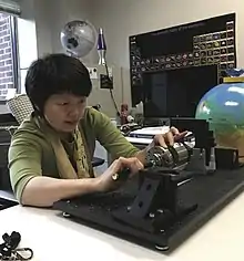 Researcher using a diamond anvil cell to study materials under deep Earth conditions.[22]