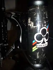 Combining different materials can provide the desired stiffness, compliance, or damping in different areas better than can be accomplished with a single material. The combined materials are usually carbon fiber and a metal, either steel, aluminum, or titanium. One implementation of this approach includes a metal down tube and chain stays with carbon top tube, seat tube, and seat stays.[67] Another is a metal main triangle and chain stays with just carbon seat stays.[68] Carbon forks have become very common on racing bicycles of all frame materials.[69]
